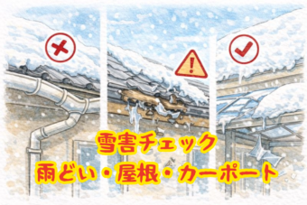 雪害(雪の被害)チェックと対策|雨どい・屋根・カーポートの破損を早期発見