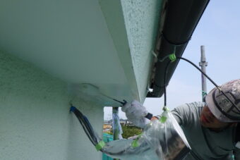 宇都宮市 外壁塗装工事 6日目 破風・鼻隠し 中塗り 上塗り 軒天・外壁との取合い塗装