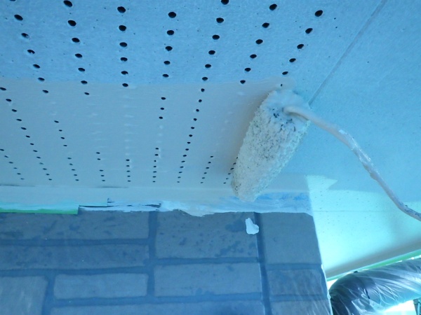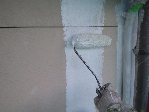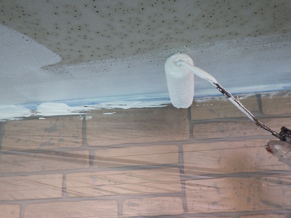軒天の下塗り塗装をしている所です。 今回、二階の外壁と同じ塗料での塗装となりますので 下塗り剤を入れていきます。 関西ペイント【 ダイナミックフィラー 】を使用しています。 ・吸い込みを抑える為、上塗りの仕上がりが良くなります。 ・水性剤なので、環境や人にやさしい塗料です。 ・速乾性に優れています。