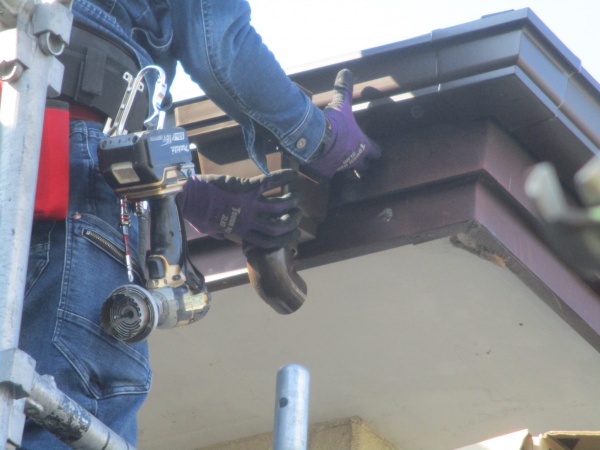 ↑昨日に引き続き 軒樋を軒継ぎ手で繋げていきます。