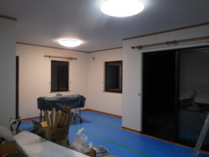 ↓ リビングのクロス貼り替え中の様子になります。