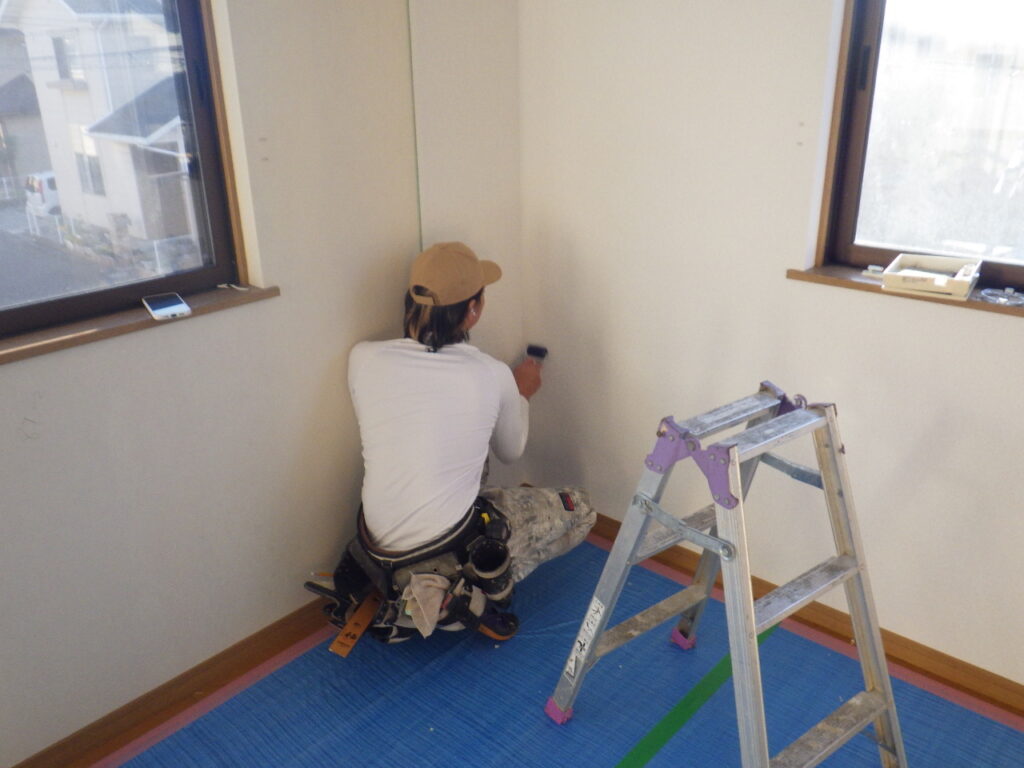 本日の作業は、洗面脱衣所・2階東側の洋室天井・壁クロス貼りが完了して、1階廊下・2階南側の洋室クロス貼り途中で終了になります。お疲れ様でした。
