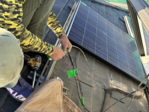 また、無理に作業を行うと屋根材や配線を傷めてしまう恐れもあるため、 順序立てて慎重に取り外していきます。