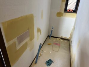 A. クロスやCFは、下地が荒れていると浮き・段差・シワが出やすくなります。見た目だけじゃなく耐久性にも関わるので、剥がしたあとにパテ処理や下地の確認をしてから仕上げに入ります。