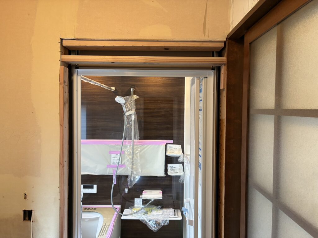 ユニットバスが設置されたことで浴室本体の形は整ってきましたが、
