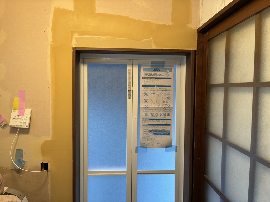 下地造作が終わったあとは、枠の設置を行い、その後に石膏ボード張り、 パテ処理へと進めていきました。 枠の取付けでは、ドアまわりや壁との取り合いを見ながら、傾きや隙間が 出ないように調整して設置していきます。