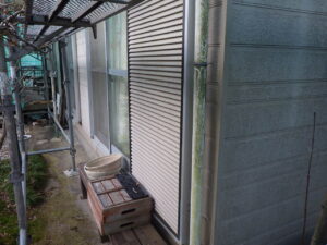 ↓ 続いて、サッシ周りや雨戸部分の掃除を行います。