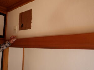 室内機を取り付ける壁面の状況を確認します。梁・柱の位置、コンセント位置、配管穴の位置(勾配)などをチェックします。