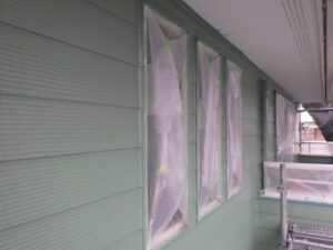 本日(10月22日)の小山市暁の屋根外壁塗装工事の作業内容は、養生ばらしや勝手口のドア補修と役物塗装【1回目】を行っていきます。