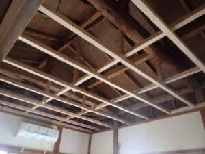 ↓ 天井解体後は、下地の取り付けを行っていきます。
