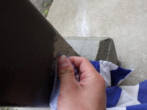 ↓ 型枠を外したあとは、柱の表面や周辺部に付着したモルタルをウエスなどで丁寧に 拭き取り、見た目もきれいに整えていきます。