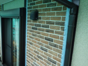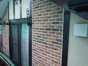 マスキングを外すことで、目地のラインがきれいに出て、仕上がりもすっきりとした印象になります。 細かい部分ですが、こうしたひとつひとつの工程を丁寧に行うことで、全体の仕上がりに差が出てきます。