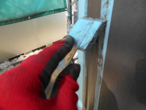 パテがしっかり乾燥した後は、ケレン作業を行い、その後にシーラーを塗布していきました。 ケレンは、表面の細かな凹凸を整えたり、塗料の密着を良くしたりするための大切な下処理です。
