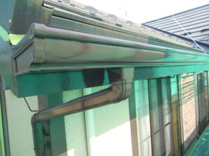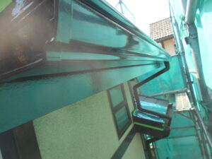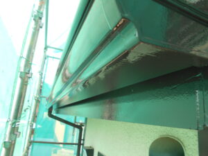 写真は一部になりますが、破風・鼻隠し・雨樋は2回塗装が完了しました。
