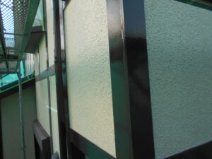上塗り前の段階ですが、塗膜が入ることで表面の印象が整い始め、施工前との違いが
