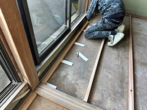 A. 原因が「下地の弱り・たわみ」の場合は、床組み(根太)からやり直して合板で面を作ることで改善しやすいです。今日はその“根本部分”を直している工程です。