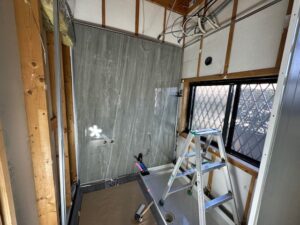 ホーロークリーン浴室パネルを順番に立て込み固定します。