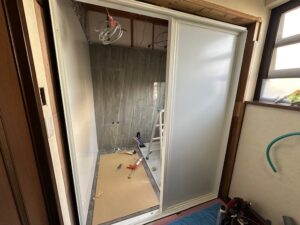 ドアを建付け開閉の重さを調整します。戸車の傾きも均等に調整しています。