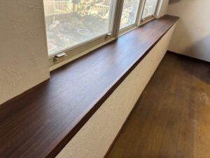 本日は、剥がれていた出窓天板を整えてから、リアテックシートで表面を補修しました。