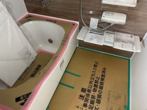 @しらかわです。 宇都宮市内の浴室リフォーム工事続きです。 今日はユニットバス組立です。 どんなお風呂になるか楽しみですね♪