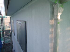 ↓ 中塗り後、乾燥状況を確認しながら、施工可能な部分から上塗り塗装を進めていきました。