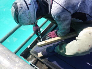 ↓ 続いて、屋根カバー工法の作業に移ります。