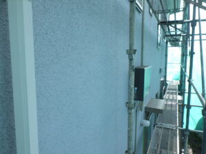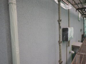 屋根工事と並行して、外壁塗装工事の準備として養生作業も進めていきました。