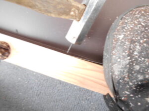少しでも納まりが甘いと、雨水が入り込みやすくなる可能性があるため、現場の形に 合わせて慎重に調整していきます。加工した平板金は、心木に釘で固定していきます。