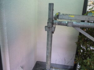 外壁に戸袋の塗料がついてしまっている部分には、このようにマスキングテープを貼り、補修を進めて行きます。