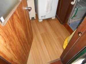 そこで、段差を安全に納めるため 見切り材を取り付け、さらに 入口ドアを少し加工 してスムーズに開閉できるよう調整しています。 見た目だけでなく、つまずきにくさ・使いやすさまで含めて仕上げるのがポイントです。