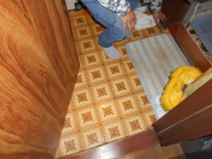 まずは沈みの原因となっている箇所を中心に、既存床の状態を確認しながら