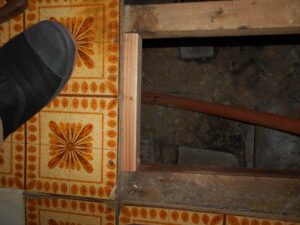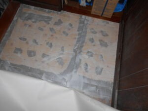 まずは沈みの原因となっている箇所を中心に、既存床の状態を確認しながら 下地(補強材)を取り付け ていきます。
