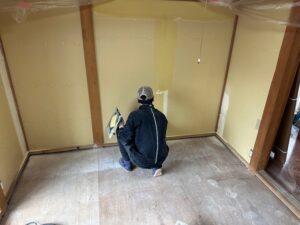 パテ作業は、完成してしまうと見えなくなる工程ですが、ここを丁寧に行うことで、 クロス・シート・CF(クッションフロア)の仕上がりが大きく変わってきます。 見た目の変化は少なく感じる日でも、こういう日の積み重ねが最終のきれいさにつながる大事な1日でした。