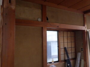 ↓ 和室の欄間部分を取り外し、下地を取り付けてていきます。
