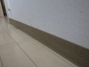 ↓ 養生を行い、ソフト巾木剥がしから行っていきます。