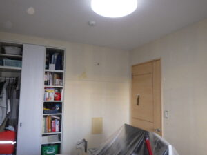 ↓ 石膏ボードに開いた穴の修繕作業を行っていきます。