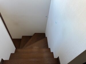 施工前 階段上り口だけ手摺がついており、そのあとは手摺が付いていない状態でした。