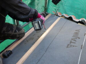 本日(12月11日)の宇都宮市駒生町での屋根葺き替え工事の作業内容は、下屋根の葺き替え作業を行っていきます。
