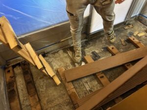 @しらかわです。 本日は、宇都宮市の宿泊施設の修繕工事です。 いつもご依頼くださっているお客様から 今回は、脱衣所の床が傷んで沈みが気になる…というご相談をいただき、 床を一度解体して、下地からしっかり作り直す改修工事を行いました! 脱衣所は「水・湿気」が集まりやすい場所なので、床の違和感は早めの対応が安心です。