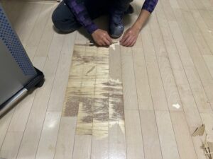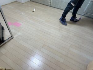 既存のフローリングに剥がれが見られたため、今回はフロアタイルを重ね張りして仕上げました。
