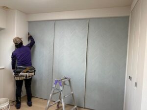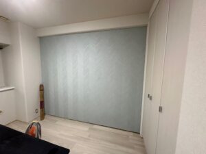 @しらかわです。 宇都宮市内のマンションリフォーム続きです。 今日はアクセントクロス&床フロアタイル貼りです。 今日は息子さんのお部屋!! どんなお部屋になるのかな。