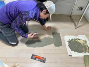 床の傷みは放っておくと、めくれや浮きが広がったり、つまずきの原因になったりすることもあります。今回のように重ね張りで対応できるケースなら、解体を最小限に抑えながら見た目も使い心地もきれいに整えられます。