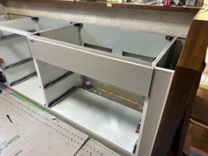 キッチンです。壁にはホーローパネルを貼っていきます。