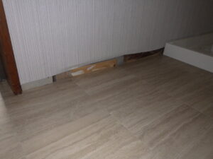 ↓ 洗面脱衣所の巾木取り付け前の写真になります。