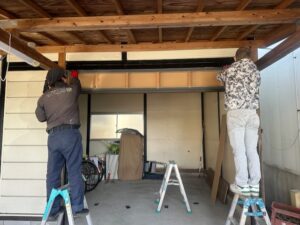 宇都宮市内で納屋出入口引き戸新設工事2日目です。