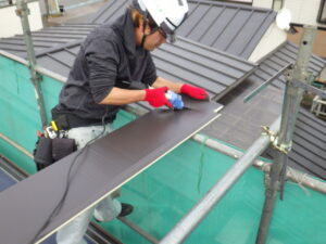 一見すると細かな確認作業ですが、こうしたひと手間をかけることで、屋根全体の見栄え が整い、きれいな仕上がりにつながります。 屋根工事は、遠くから見たときの印象も大切になるため、この工程はとても重要です。