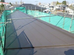 今回も、重なり寸法を確保しながら取り付けることで、見た目だけでなく防水面にも配慮 した納まりに仕上げていきました。 こうした細かな処理が、屋根全体の安心感につながっていきます。