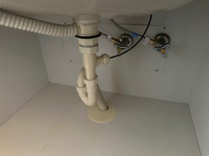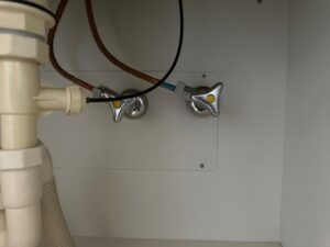 施工前 交換前に、洗面台内部の給水・給湯ホースの接続状況や、