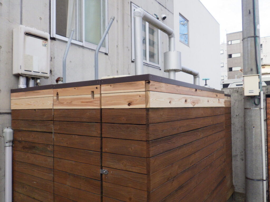 最後に、室外機が置かれているテラス部分で