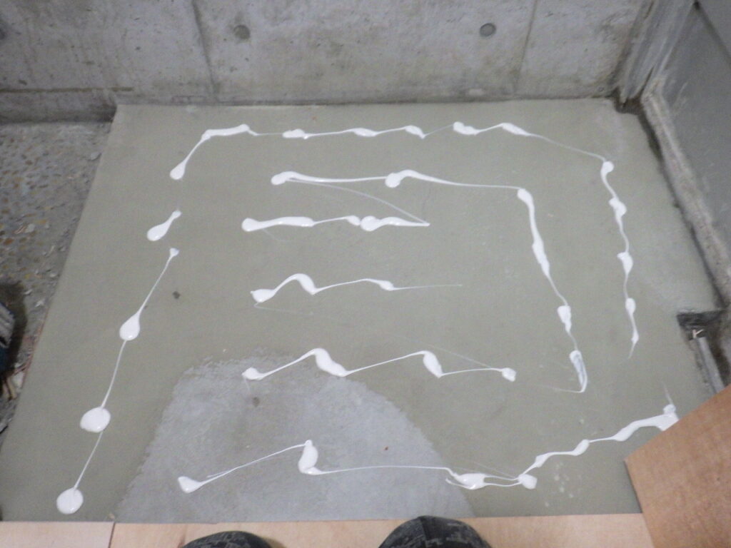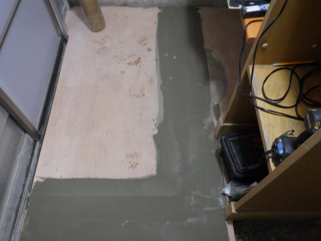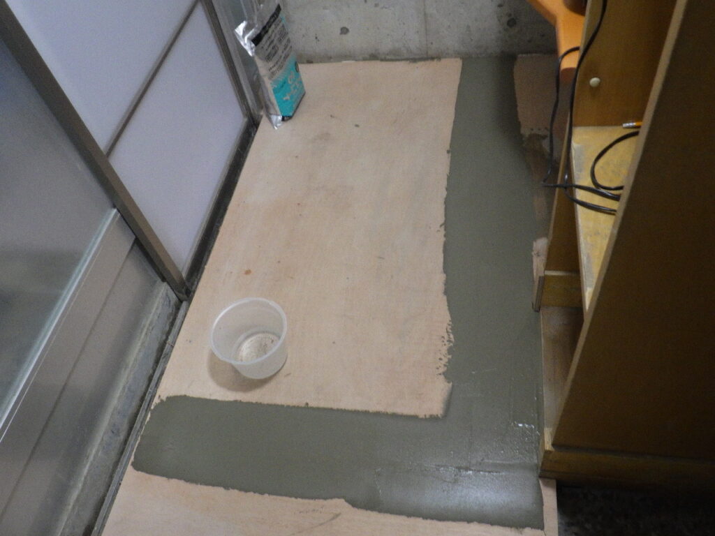 明日、硬化を確認してからクッションフロア(CF)貼りを行う予定です。